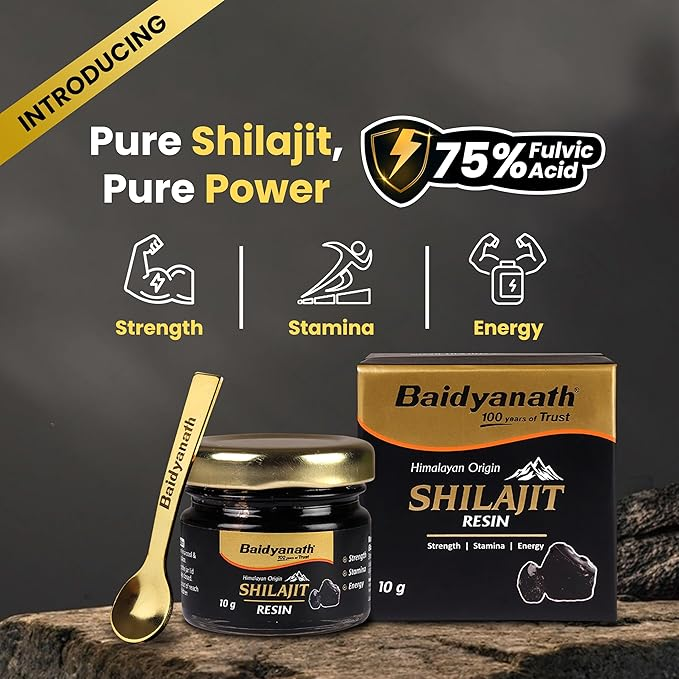 • BOOSTS ENERGY & STAMINA: BAIDYANATH Shilajeet Resin combines the power of pure Himalayan Shilajit to enhance energy, stamina, and endurance naturally, supporting overall vitality and well-being.