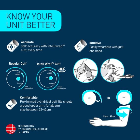 Omron’s HEM 7156-T Digital BP monitor lets you manage and track your heart health journey efficaciously. The device comes with features like Hypertension indicator, irregular heartbeat detection, and 360 Accuracy Intelliwrap Cuff which helps you in keeping high BP under check. The Bluetooth Connectivity feature integrates your readings with a smart device and enables you to share them readily with your physician for an effective course of treatment.
