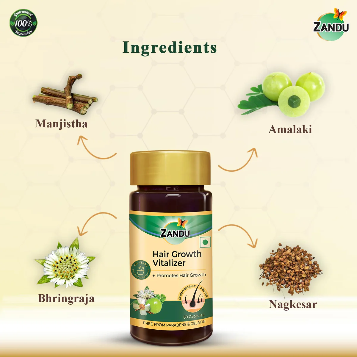 Introducing Zandu Hair Growth Vitalizer Capsule, a scientifically proven Ayurvedic medicine for hair growth, scalp protection, hair fall control, and delayed greying, while providing optimal nourishment to hair.