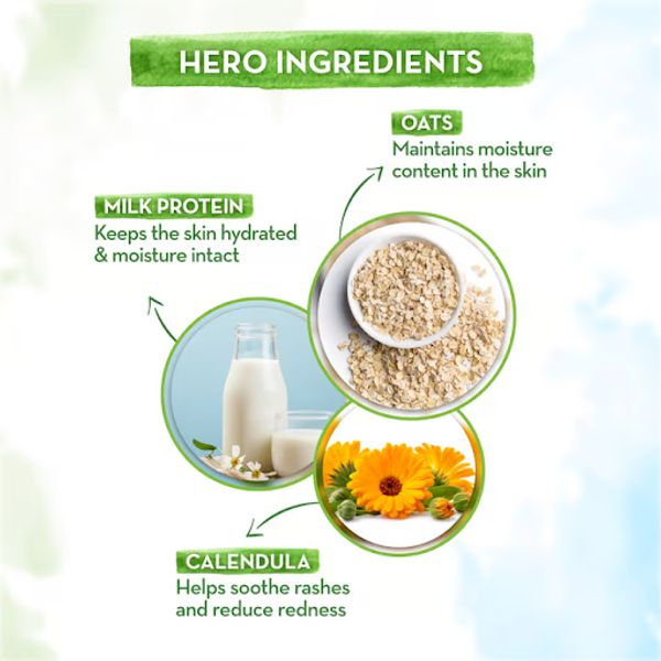 Infused with the goodness of natural ingredients like Oats, Milk and Calendula, I gently cleanse, reduce allergic infections and maintain the right pH balance and moisture content. I am also MadeSafe Certified, pH balanced, toxin-free, and Allergy Certified. Give your baby a milky bathing experience with me!