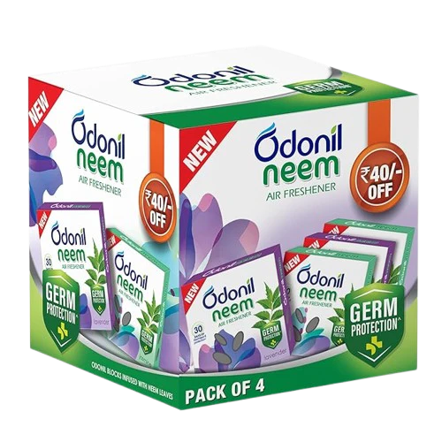 Odonil Neem Blocks, infused with Neem leaves to give you protection and fragrant bathrooms for upto 30 days. - Comes with Odor Buster Technology that removes malodor. - Infused with Neem leaves, known for Germ Protection. - Available in 2 Fragrances - Lavender and Jasmine.