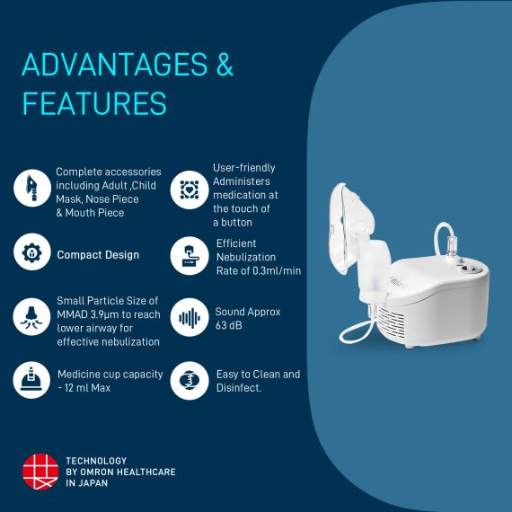 Omron NE C101 home nebulizer machine is the comprehensive solution for managing the respiratory health of your entire family. The machine enables a fuss-free nebulizing experience at the touch of a button.