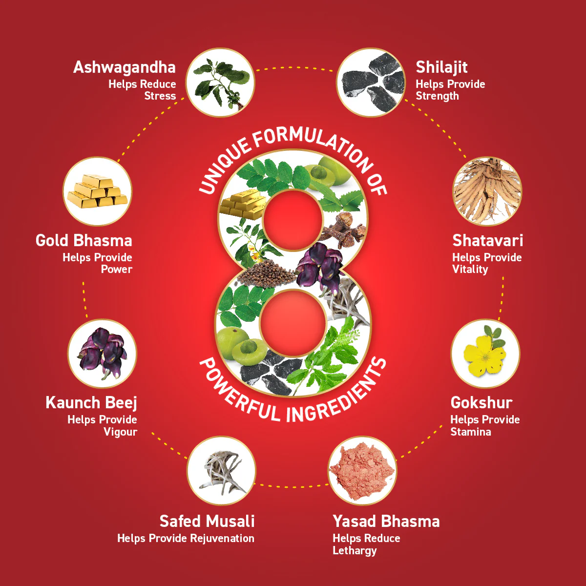 Presenting Zandu Vigorex Gold Capsule for everlasting stamina, energy, and power. Made with a unique blend of eight powerful Ayurvedic herbs and minerals, Zandu Vigorex Gold Capsule can help relieve stress, enhance stamina, and boost energy to secure a sense of vigour and passion in your marital life.